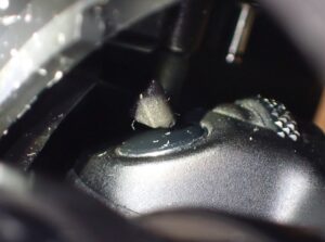 黄色い部分にリングがはめ込まれているのだが、これを専用器具かマイナスドライバー2つ使って外す。外し方は「Eリング 外し方」でググってもらえればと思う。