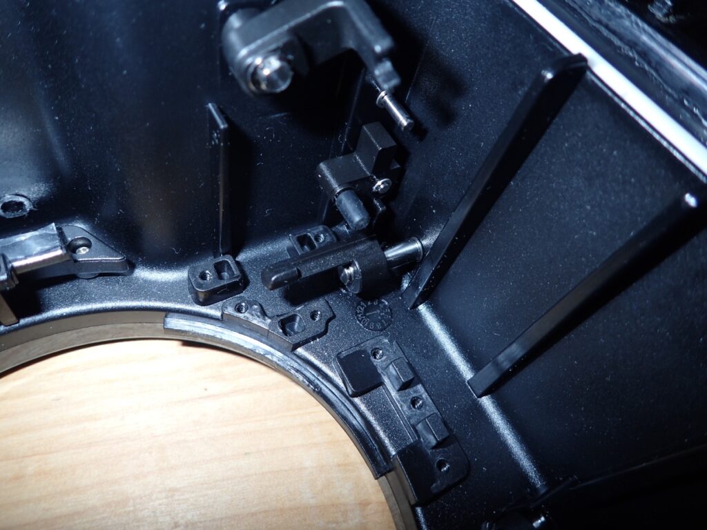 ばねがある場合は以下のように、2mm位の隙間が空いた状態になっていて、そこからシャッターレバーを引きこまなければいけなかった。