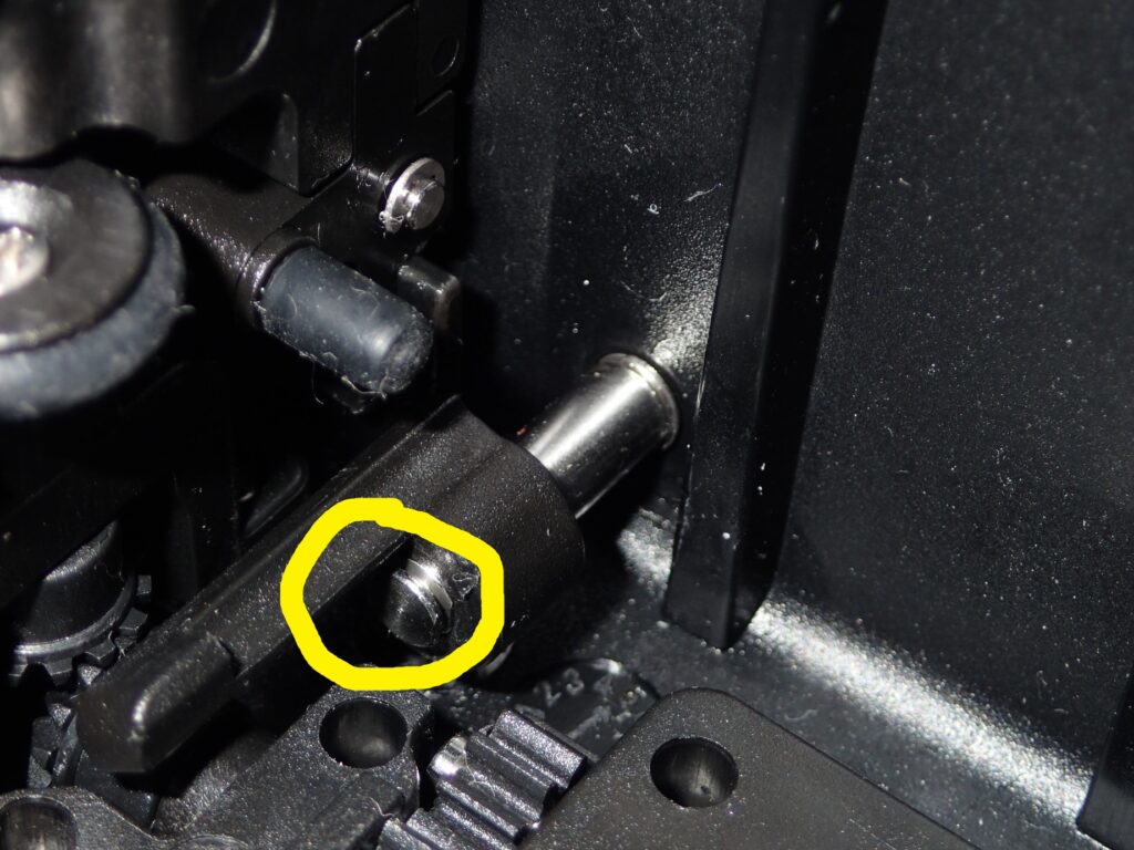 ただ私の場合は引き出すのがちょっと硬かったので、黄色部分以外の上下の部品も取り外した。